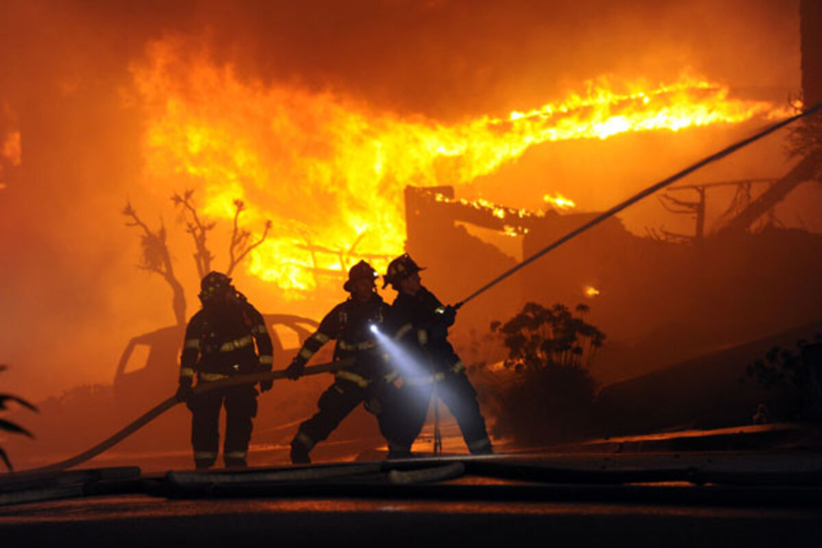 As firefighters swarmed around blazers across the neighborhood, firefighting planes roared overhead and dumped retardant onto the blazes.