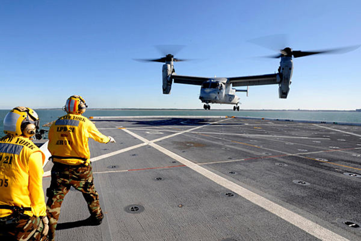 The Osprey lost power upon takeoff from the USS Makin Island, an amphibious assault ship carrying members of the 11th Marine Expeditionary Unit on deployment to support US military operations in Iraq and Syria.